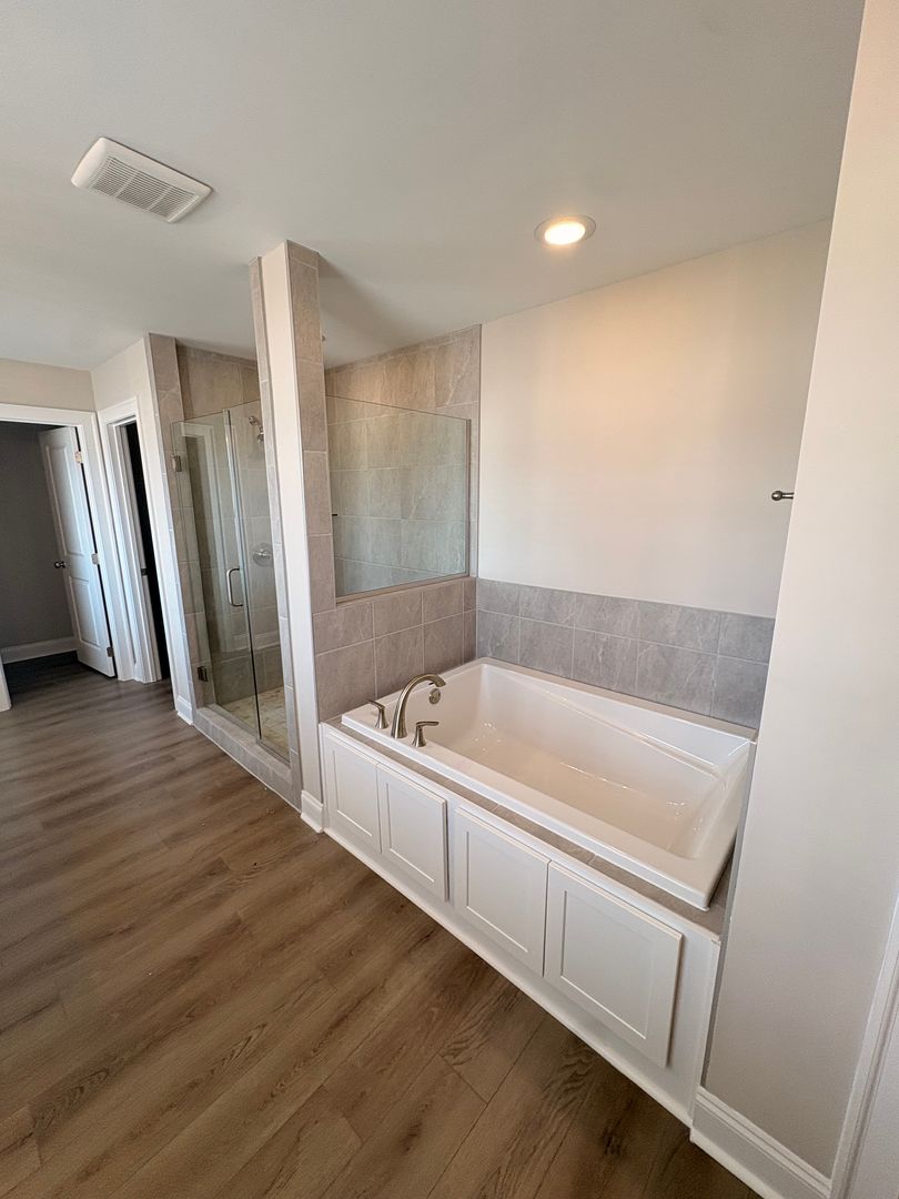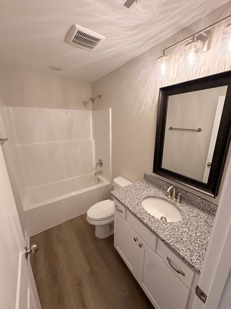 3 bedroom 2.5 bathroom townhome. The spacious great room opens to a covered patio, perfect for gatherings. Dining area connects to an open kitchen with lots of counter space, cabinets, and a walk-in pantry. Upstairs, the primary suite has a garden tub, shower, dual vanities, and a walk-in closet. Two more bedrooms, a full bath, and a laundry room with linen closet complete the second floor.