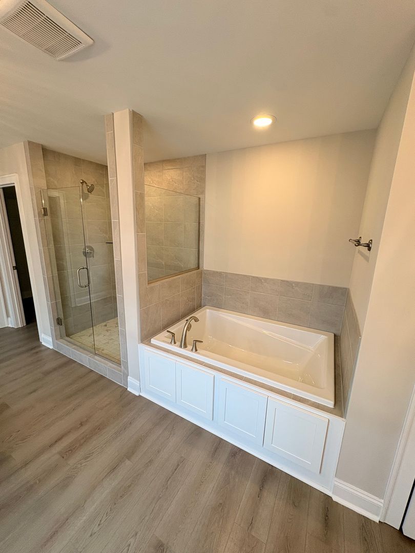 3 bedroom 2.5 bathroom townhome. The spacious great room opens to a covered patio, perfect for gatherings. Dining area connects to an open kitchen with lots of counter space, cabinets, and a walk-in pantry. Upstairs, the primary suite has a garden tub, shower, dual vanities, and a walk-in closet. Two more bedrooms, a full bath, and a laundry room with linen closet complete the second floor.