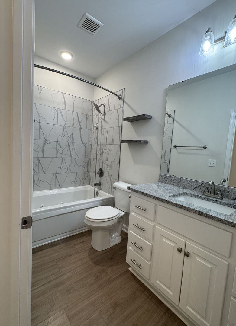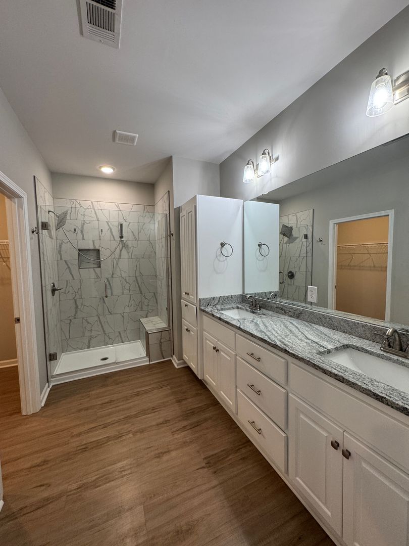 The primary suite provides a peaceful retreat with a walk-in closet, dual-sink granite vanity, and a large tiled shower. Two additional bedrooms and a full guest bath offer plenty of room for family, guests, or even a home office. You’ll also find a washer, and a dryer in the dedicated laundry area.